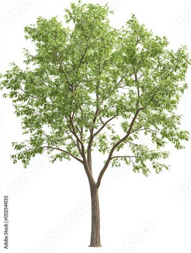 Young Slender Elm Tree with Lush Green Foliage Against White Background