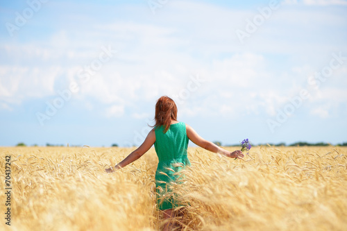 Young woman walking on wheat field
