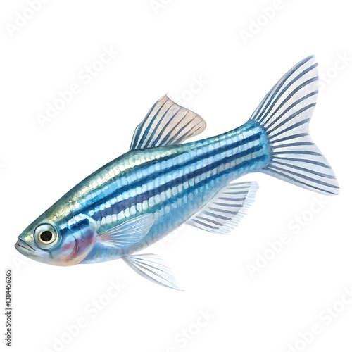 Zebrafish (Danio rerio) Side View - Isolated PNG on Transparent Background