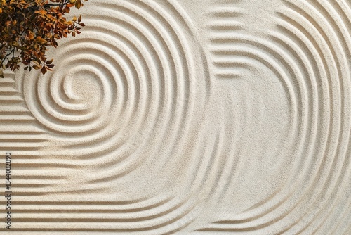 Zen Garden Pattern with Circular and Linear Sand Textures for Meditation and Relaxation