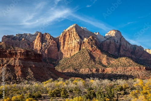 Zion's cliffs beneath a blue sky