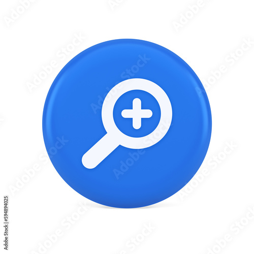 Zoom search cyberspace information button discovery magnifying glass plus 3d realistic icon