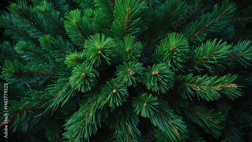 Zoomed-in view of a soft fir tree branch, shallow focus, suitable for wallpaper design with copy space