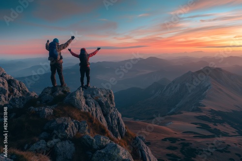 Zwei Wanderer feiern auf dem Berggipfel