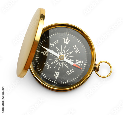 Golden vintage compass isolated on white