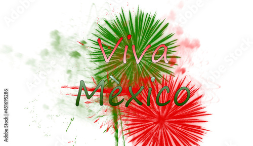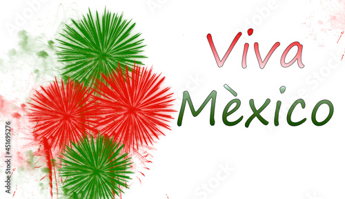 Fuegos artificiales en color verde, blanco y rojo, día de la independencia, 16 de septiembre, viva México, imagen con fondo blanco.