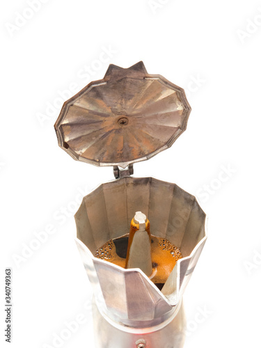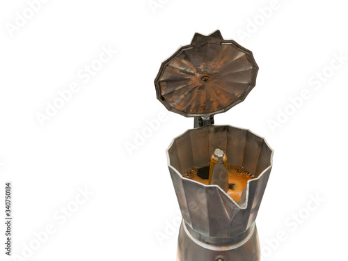 Classic Italian coffee machine with White background in vertical