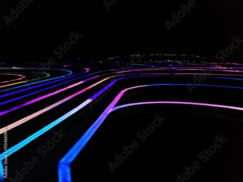 Jardín abstracto de luces, creando caminos de colores morados