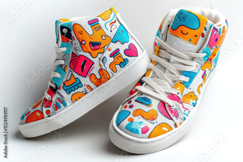 Playful kid sneakers display vibrant design, looking cheerful and ready to move