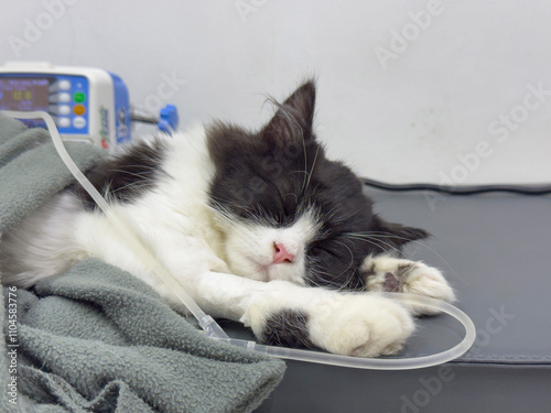 Sleeping kitten at veterinarian