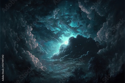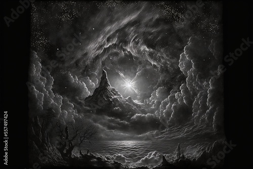 "Stunning AI Generated Night Sky Painting Illustration in the Style of Gustave Dore for Your Majestic and Ethereal Projects"