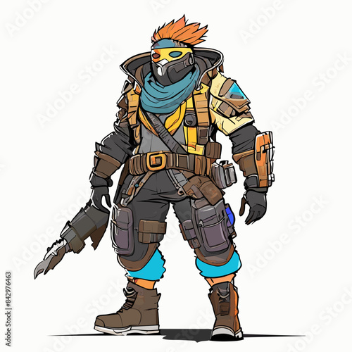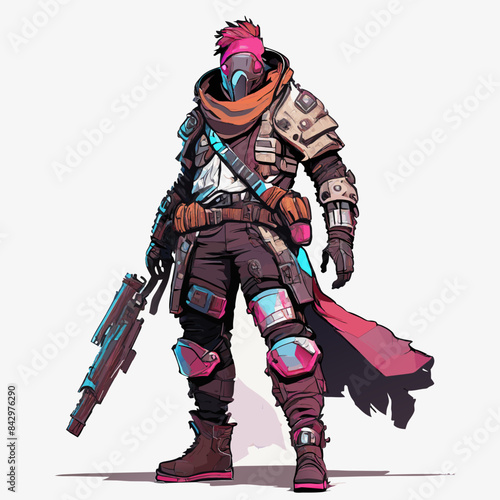 "Full-Length Cyberpunk Mascot Graphic for Graphic Designers: Front-View Illustration"