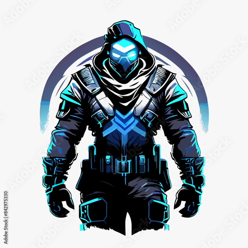 "Detailed Cyberpunk Mascot Vector Tailored for Various Applications: Frontal Art"