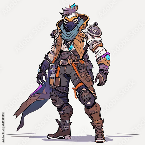 "Mascot Style Cyberpunk Illustration in Full-Length View: Frontal Pose Graphic for Creatives"