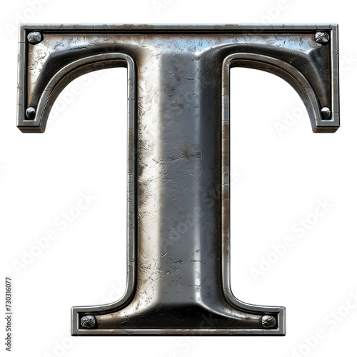 "3D Metal Letter T" Isolated on Transparent or White Background, PNG
