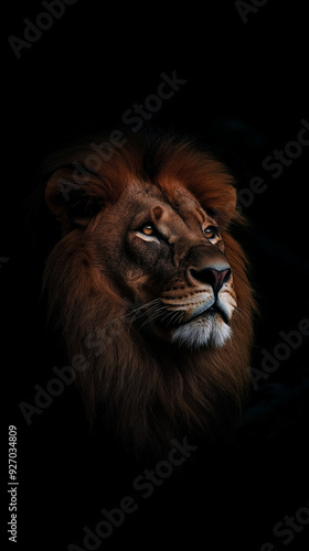 Portrait of a Beautiful lion, lion in the dark