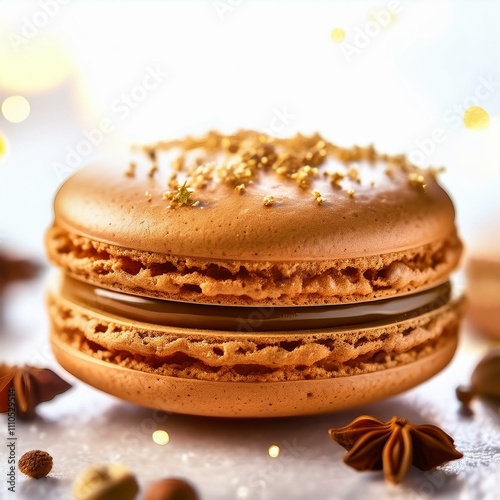 "Glimpse of Sweetness: Golden All-Spice Amaretti Macaron Close-Up"