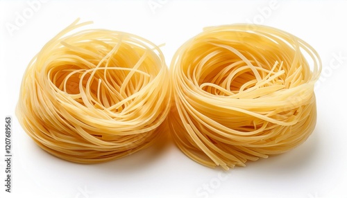 "Twin Strands: Uncooked Angel Hair Pasta on White"