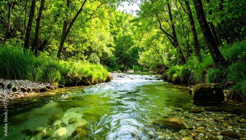 "Scenic River Surrounded by Vibrant Greenery, Perfect for Eco-Friendly Campaigns and World Water Day Promotions"