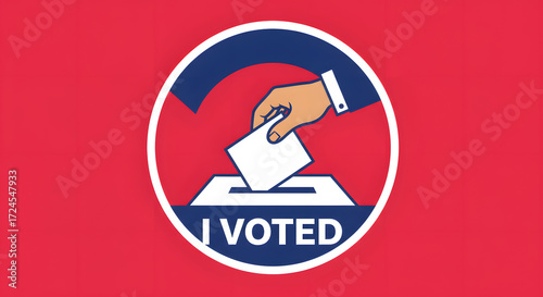 "I Voted" sticker graphic: Hand dropping ballot into box, election day symbol, civic duty, democracy and participation concept