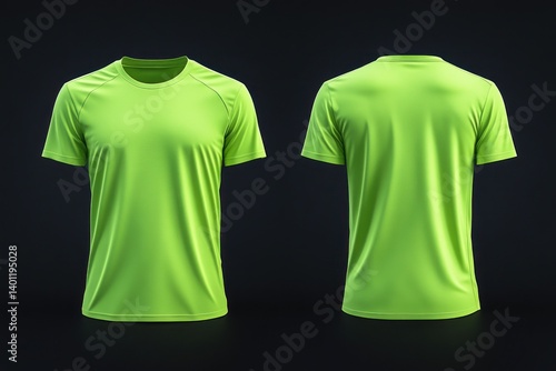 A blank neon green t-shirt is displayed in both front and back views, serving as an activewear design template. T