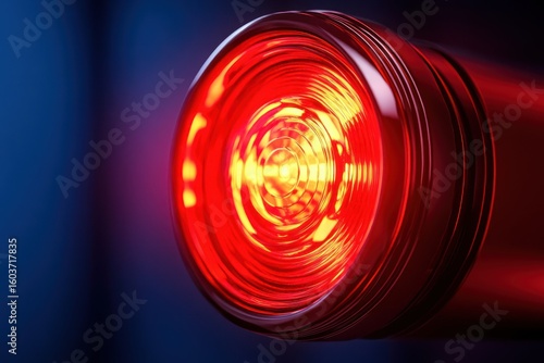 Close up of a bright red flashing emergency warning light glowing intensely