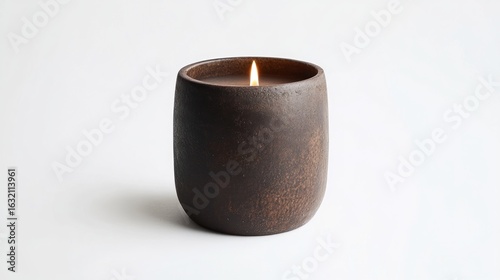 Brown candle in rustic pot home decor fragrance aromatherapy