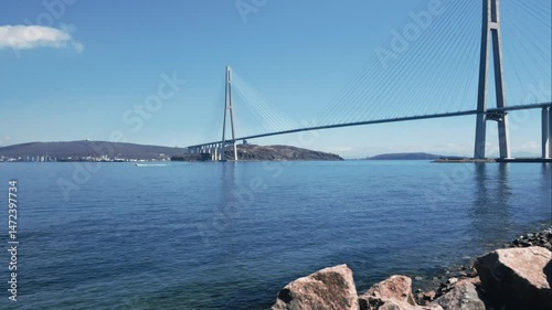 Timelapse view of the cable-stayed bridge in Vladivostok. View from the observation deck
