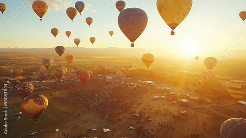 "Albuquerque International Balloon Fiesta: Aerial View of Hundreds of Hot Air Balloons in the Sky"