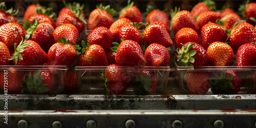 "Fresh Strawberries on Conveyor Belt - Food Processing | Strawberry Production Line - Industrial Food Manufacturing"