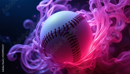 "Futuristic Baseball with Neon Smoke and Dramatic Lighting"