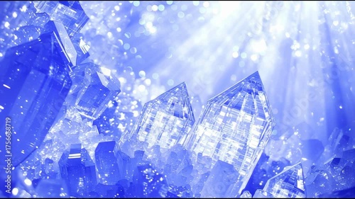 Glowing blue crystals sparkle in mystical environment, reflecting radiant light and creating enchanting atmosphere filled with intricate beauty