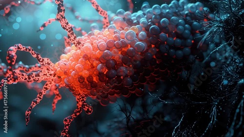 Close Up of Microscopic Organism Showcasing Intricate Red and Blue Textures, Vibrant Details in Surreal Science Environment