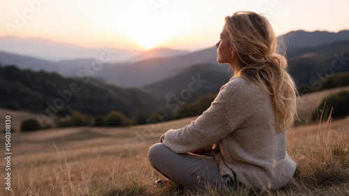 woman sitting alone on mountain