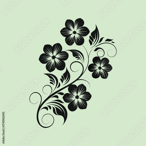 "Elegant Floral Whirl – Black & White Botanical Ornament"