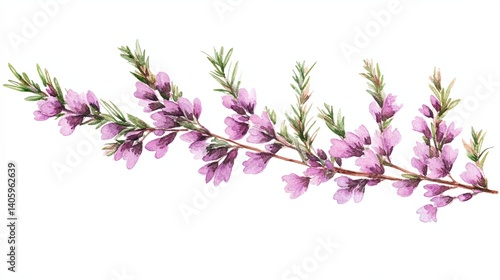Elegant Purple Flowering Branch Watercolor Painting Style Isolated