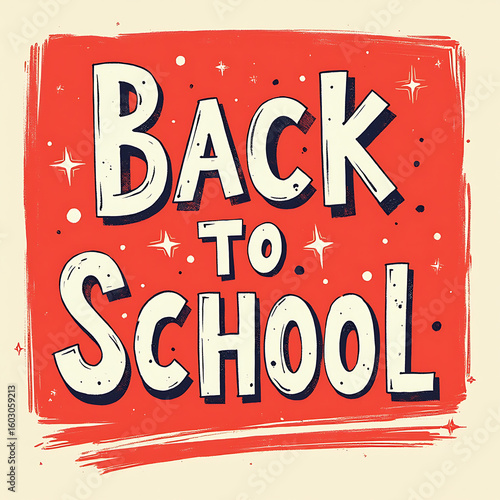 "Back to School" lettering in a playful, vintage style with stars and a red background, suggesting a return to education.