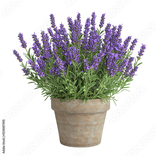 A 3D Potted Lavender Plant with Fragrant Purple Flowers Isolated on Transparent Background