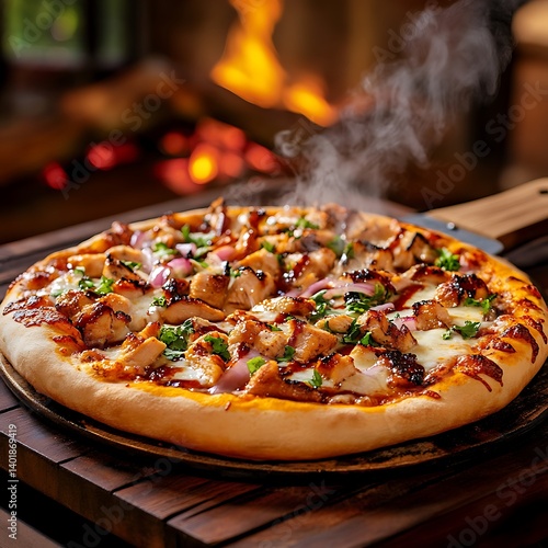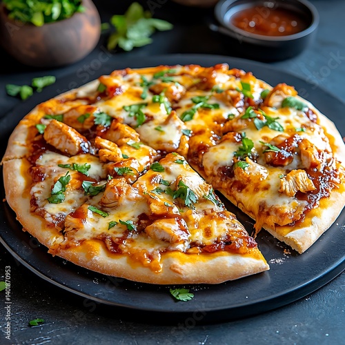 "Delicious BBQ Chicken Pizza with Fresh Herbs and Melted Cheese"