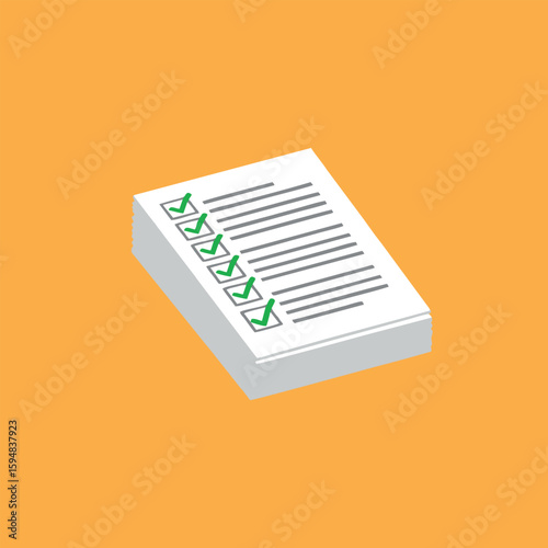 "Approved Documents Vector Set – White Papers with Green Check Marks on Yellow Background"