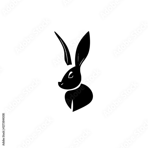 "Black Rabbit Silhouette on White Background. A minimalist, simple, black and white illustration of a rabbit. The background is white."