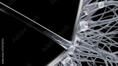 Microscopic view of neural network connections and synapses.