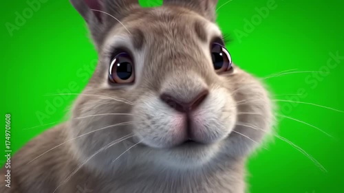 Adorable Animated CGI Rabbit Making Funny Faces on Green Screen.