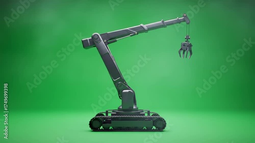 Advanced Industrial Robotic Arm with Claw on Green Screen Background.