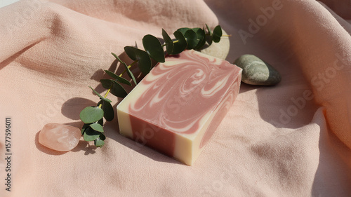 Pink Soap Bar with Eucalyptus and Crystals, a Luxurious Spa Aesthetic