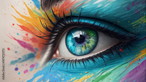 Close-up of a Colorful Painted Eye, Evoking Creativity