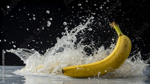 Splashing Banana A vibrant yellow banana immersed in a dynamic water splash.