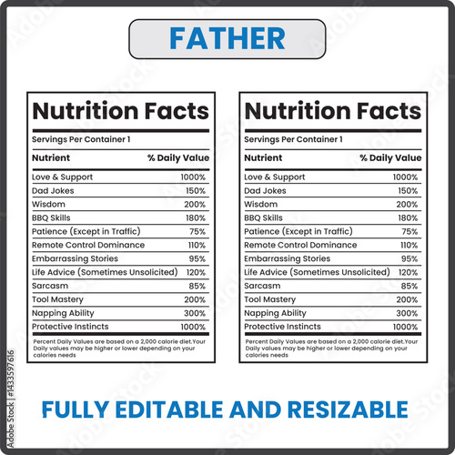 "Father nutrition label" "Father nutrition facts vector" "Father's Day nutrition facts" father nutrition facts not your father's root beer nutrition facts