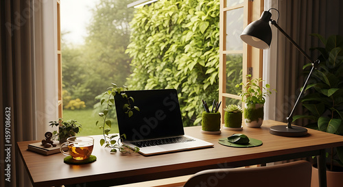 "Remote Work Meets Imagination: A Whimsical Workspace Blending Nature and Focus"