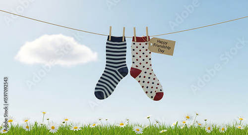 "Different but Together: A Whimsical Friendship Day Scene with Mismatched Socks and Sunshine Simplicity"